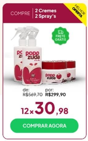 Além do creme, a marca também oferece o Popozuda Spray, ideal para aplicação rápida e prática no dia a dia.